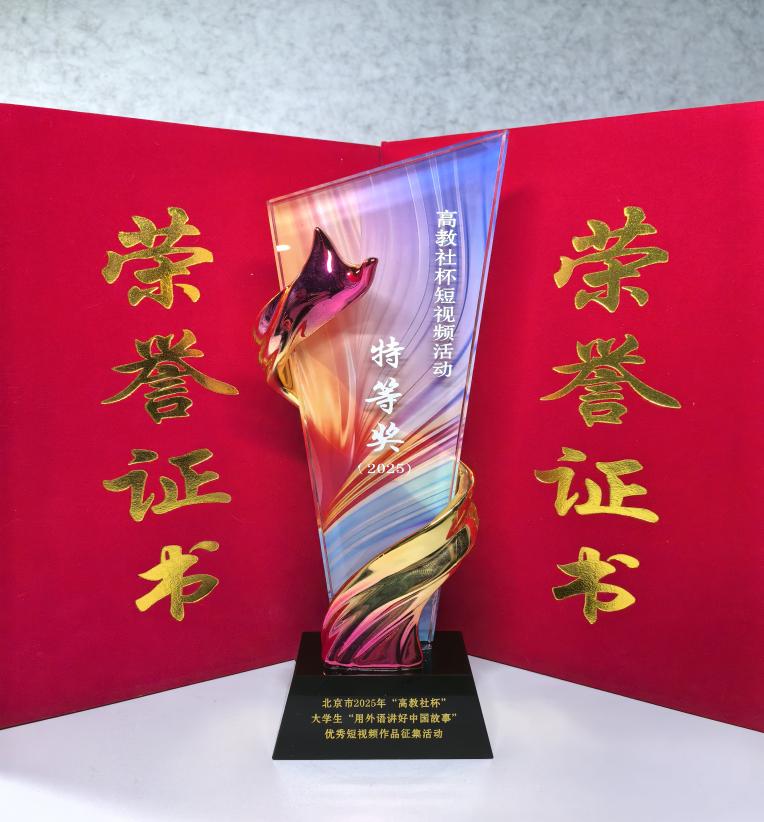 近日,由北京市教育委员会高等教育处联合高等教育出版社共同举办的“北京市2025年“高教社杯”大学生“用外语讲好中国故事”优秀短视频作品征集活动圆满落幕。来自600cc全讯白菜自助注册的李昀翰团队与雷玥团队脱颖而出,分别获得北京市特等奖与一等奖,800全讯白菜官方网站四位指导教师郭戈、张剑与张丽华、徐嘉获评“优秀指导教师”。