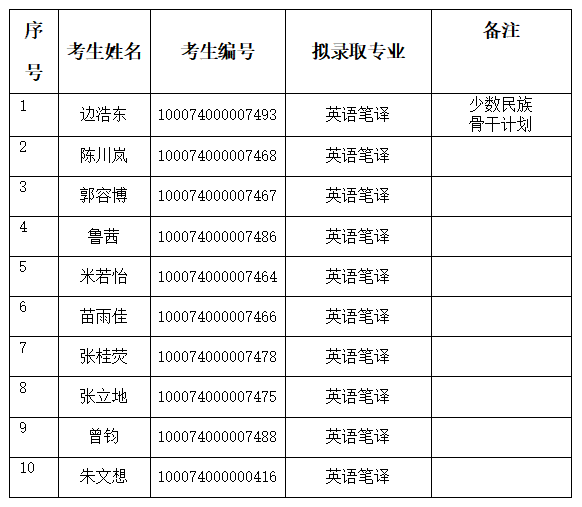 经过初试和复试工作,我院2024年英语笔译专业硕士研究生拟录取名单如下: